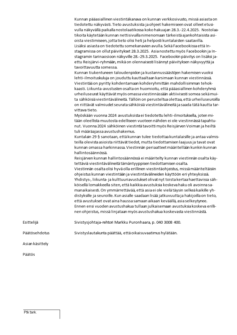Dynasty tietopalvelu Haku RSS Reisjärven kunta